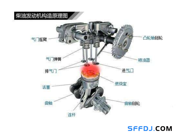 1、先說柴油機(jī)的基本結(jié)構(gòu):它由氣缸、活塞、氣缸蓋、進(jìn)氣門、排氣門、活塞銷、連桿、曲軸、軸承和飛輪等構(gòu)件構(gòu)成。
