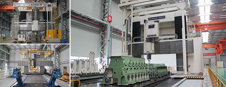 機(jī)加工車間建設(shè)于2011年,面積1.6萬多平方米,投資額達(dá)3.6億人民幣。具備年產(chǎn)120萬馬力的船用低速柴油機(jī)機(jī)架、機(jī)座、氣缸體三大件加工能力,同時可承接各種外單位委托加工業(yè)務(wù)。